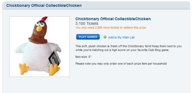 I first saw this chicken in a coworker’s office. I asked him how he got it and he said “I used to run Club Bing – this is from Chicktionary.”